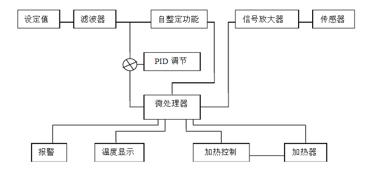 微電腦智能控制儀,采用自整定PID技術(shù),與傳統(tǒng)PID控制相比具有控溫迅速,響應(yīng)快,超調(diào)小,精度高的特點(diǎn),設(shè)定溫度和箱內(nèi)溫度同時(shí)均有數(shù)字顯示,具有上限跟蹤報(bào)警和帶數(shù)字定時(shí)器功能,定時(shí)可長達(dá)9999分鐘。使用輕觸按鍵設(shè)定參數(shù),操作方便。