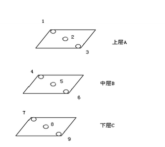6.1.1試驗方法:在設(shè)備空載情況下,設(shè)置干燥箱的溫度分別為80℃、105℃、120℃,將溫度記錄儀的探頭置于干燥箱內(nèi)的各點內(nèi),探頭不能與干燥箱腔室內(nèi)金屬表面接觸,啟動干燥箱開始加熱,等干燥箱穩(wěn)定30min后啟用溫度記錄儀,每間隔5min記錄一次溫度,連續(xù)記錄4小時,每種溫度設(shè)置運行三次以檢查其重現(xiàn)性。空載溫度探頭分布如下: