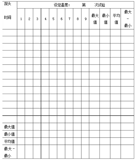 6.2.1試驗方法:在干燥箱內(nèi)放滿器具,按照空載熱分布試驗的方法操作,探頭分布與空載時相同。